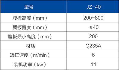 2、H型鋼翼緣矯正機(jī)可根據(jù)用戶翼緣板高厚度需求選擇JZ-40型翼緣矯正機(jī)。